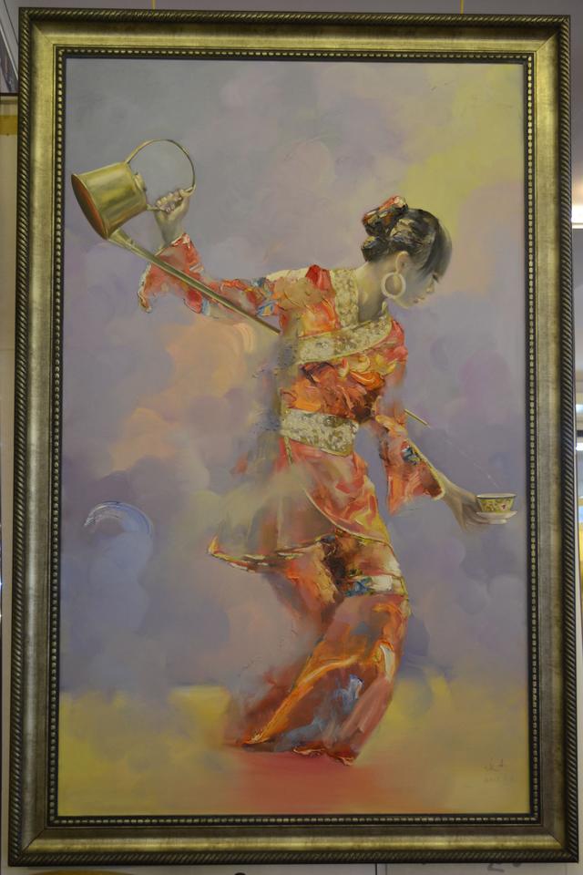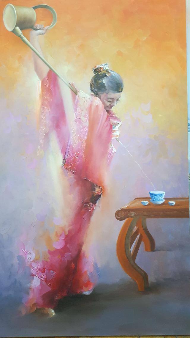 油画作品:茶道姑娘